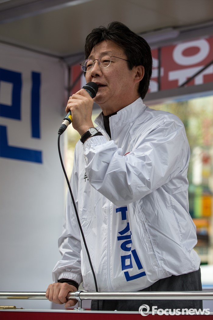 (대구=포커스뉴스) 유승민 무소속 대구 동구을 후보가 12일 오후 대구광역시 동구 방촌시장에서 유세를하며 유권자들에게 한 표를 호소 하고 있다.
