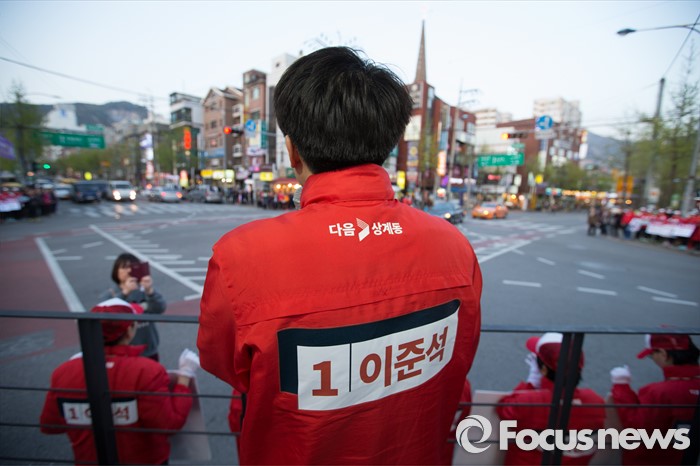 (서울=포커스뉴스) 12일 오후 서울 노원구 GS수퍼마켓 상계점 앞에서 이준석 새누리당 노원병 후보자가 유세를 하고 있다.