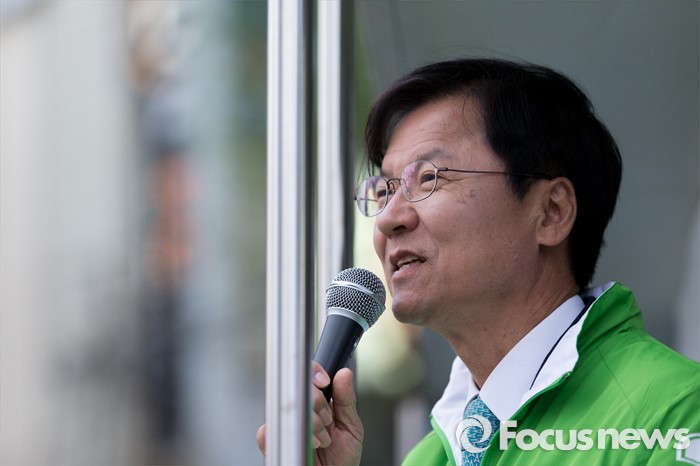 (광주=포커스뉴스) 4.13총선을 하루 앞둔 12일 오후 광주 서구 화정동 염주사거리에서 천정배 국민의당 광주 서구을 후보가 선거유세를 하고 있다.