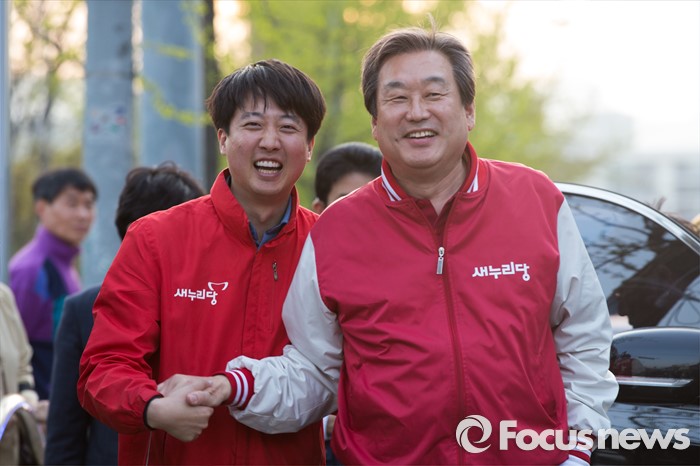 (서울=포커스뉴스) 12일 오후 서울 노원구 GS수퍼마켓 상계점 앞에서 김무성 새누리당 대표가 이준석 새누리당 노원병 후보자 지원 유세를 하고 있다.