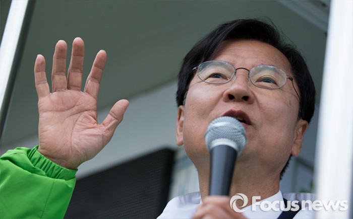 (광주=포커스뉴스) 4.13총선을 하루 앞둔 12일 오후 광주 서구 화정동 염주사거리에서 천정배 국민의당 광주 서구을 후보가 선거유세를 하고 있다.