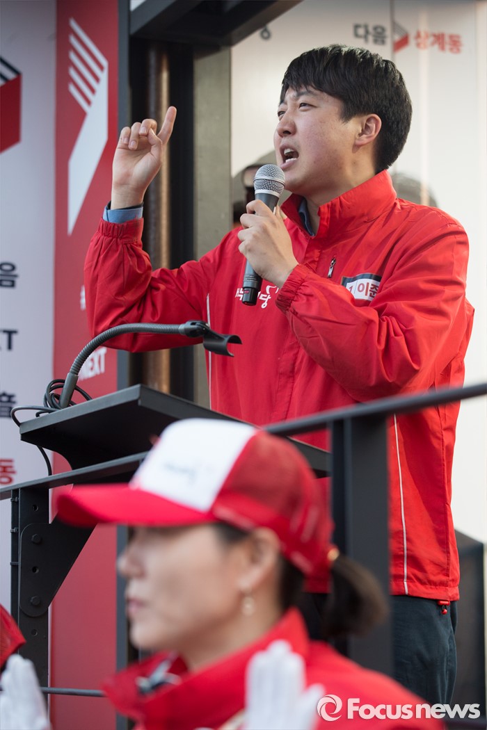 (서울=포커스뉴스) 12일 오후 서울 노원구 GS수퍼마켓 상계점 앞에서 이준석 새누리당 노원병 후보자가 유세를 하고 있다.