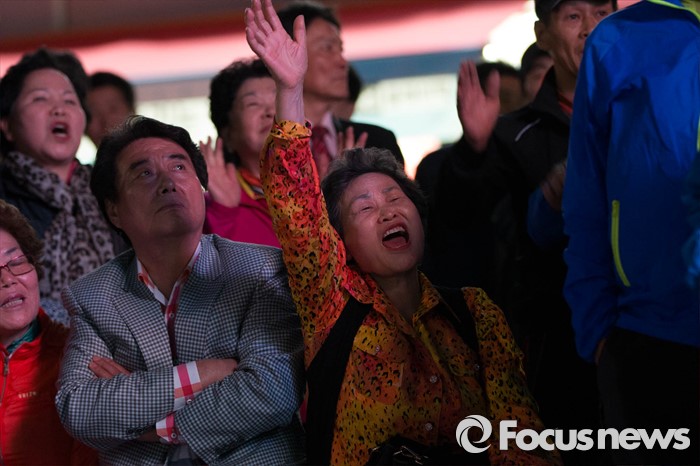 (서울=포커스뉴스) 20대 총선을 하루 앞둔 12일 오후 서울 종로구의 한 아파트 일대에서 유권자들이 정세균 더불어민주당 종로구 후보가 막바지 선거유세를 지켜보고 있다.