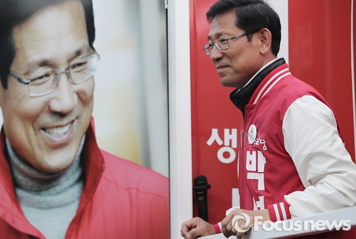 (서울=포커스뉴스) 4.13총선을 하루 앞둔 12일 오후 서울 영등포구 당산역 인근에서 박선규 새누리당 영등포갑 후보가 선거유세전 시민들을 바라보고 있다.