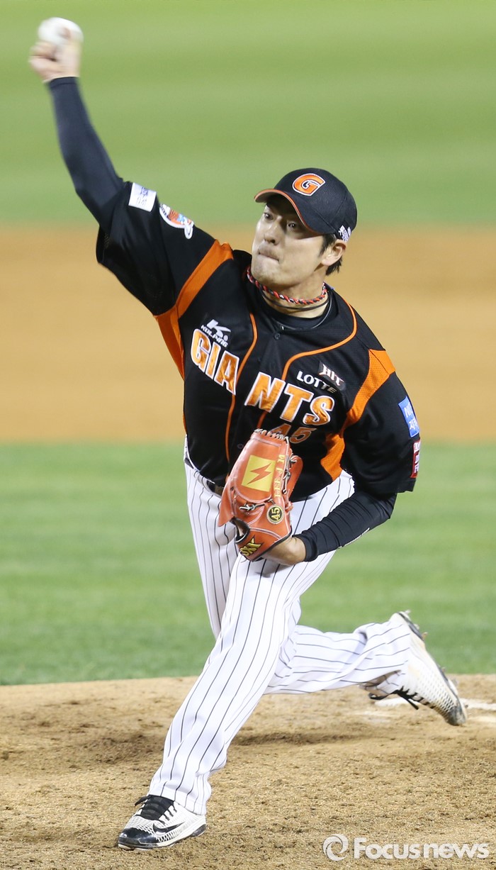 (서울=포커스뉴스) 12일 서울 잠실구장에서 열린 2016 프로야구 롯데-LG 경기에서 롯데 투수 이정민이 4회에 등판해 투구하고 있다.