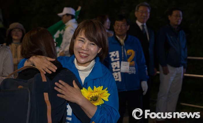 | △ 마지막 유세, 시민과 포옹하는 전현희 |