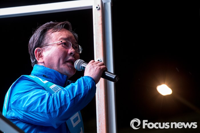 (대구=포커스뉴스) 김부겸 더불어민주당 수성구갑 후보가 12일 오후 대구광역시 수성구 신매네거리에서 유세를하며 유권자들에게 한 표를 호소 하고 있다.