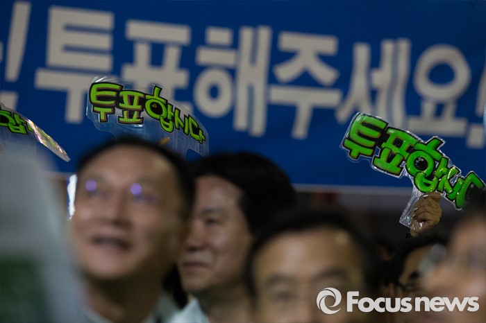 (서울=포커스뉴스) 4.13총선을 하루 앞둔 12일 오후 서울 노원구 롯데백화점 정문 앞에서 시민들이 안철수 국민의당 상임공동대표의 선거 유세를 지켜보고 있다.