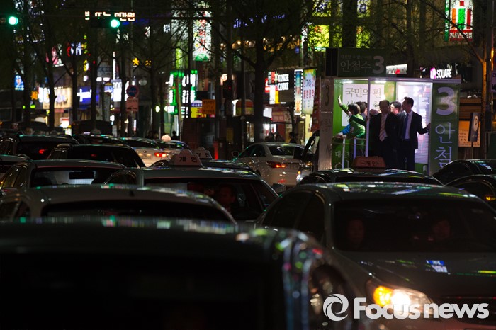 (서울=포커스뉴스) 4.13총선을 하루 앞둔 12일 오후 서울 노원구 롯데백화점 정문 앞에서 안철수 국민의당 상임공동대표가 막바지 선거 유세를 마친 뒤 유세차량을 타고 이동하고 있다.