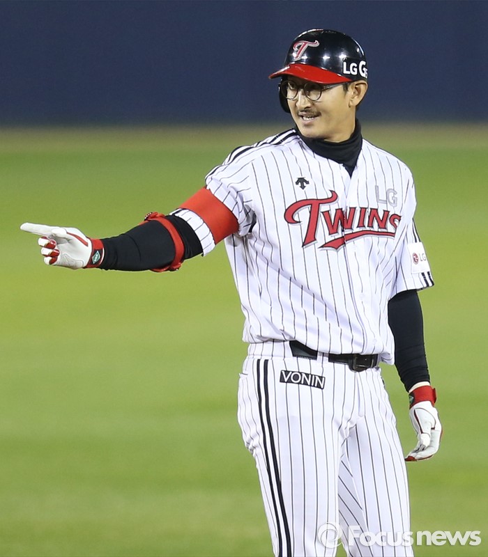 (서울=포커스뉴스) 12일 서울 잠실구장에서 열린 2016 프로야구 롯데-LG 경기 7히말 1사 1루에서 LG 박용택이 1타점 우중간 2루타를 치고 3루코치를 보며 웃고 있다.