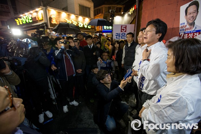 (대구=포커스뉴스) 유승민 무소속 대구 동구을 후보가 12일 오후 대구광역시 동구 평화시장 닭똥집골목에서 마무리 합동유세를하며 지지자들에게 감사 인사를 전하고 있다.