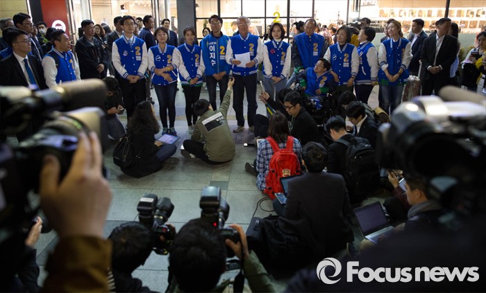 (서울=포커스뉴스) 20대 총선을 하루 앞둔 12일 오후 서울 중구 신평화시장 일대에서 김종인 더불어민주당 비상대책위원회 대표를 비롯한 비례대표 후보들과 마지막 선거유세를 하고 있다.