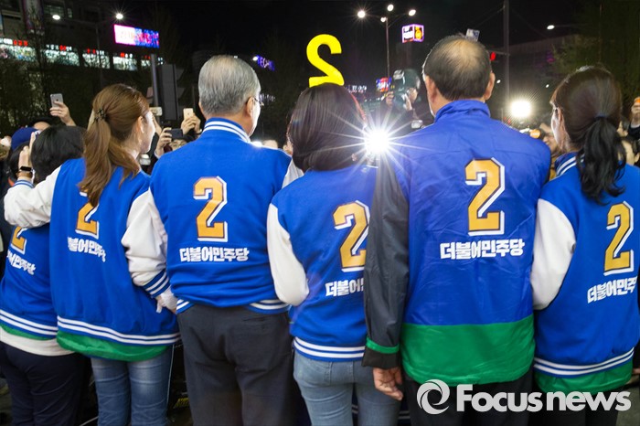 (서울=포커스뉴스) 20대 총선을 하루 앞둔 12일 오후 서울 중구 신평화시장 일대에서 김종인 더불어민주당 비상대책위원회 대표를 비롯한 비례대표 후보들과 마지막 선거유세를 하고 있다.