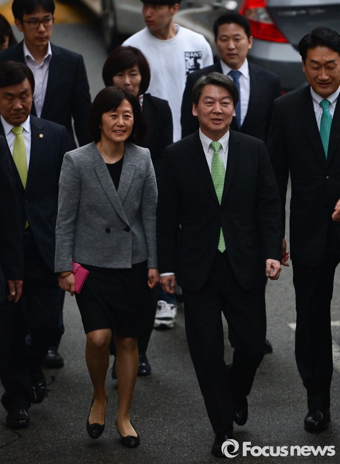 (서울=포커스뉴스) 안철수 국민의당 상임공동대표와 부인 김미경 씨가 제20대 국회의원 선거일인 13일 오전 서울 노원구 상계1동 제7투표소로 투표하기 위해 들어서고 있다.