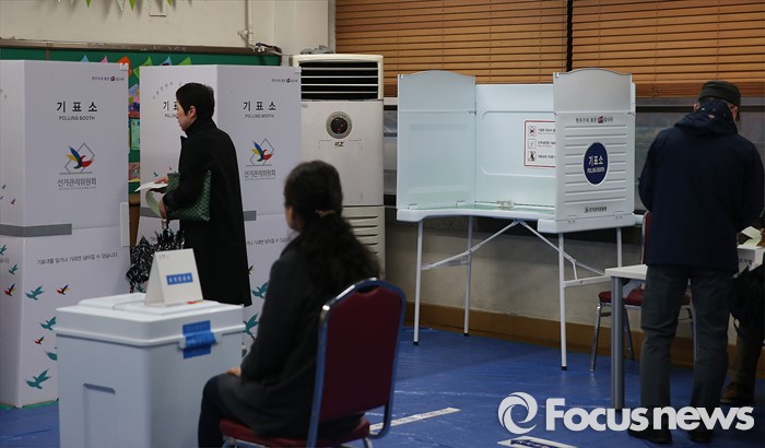 (서울=포커스뉴스) 제20대 국회의원 선거가 시작된 13일 오전서울 용산구 한남초등학교에 마련된 한남 제3투표소에서 유권자들이 투표를 하고 있다.