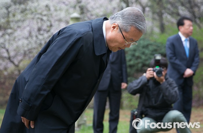 (서울=포커스뉴스) 20대 총선 투표일인 13일 오전 김종인 더불어민주당 비대위 대표 겸 선대위원장이 서울 강북구 수유동에 위치한 자신의 조부인 가인 김병로 선생 묘소를 찾아 성묘를 하고 있다.