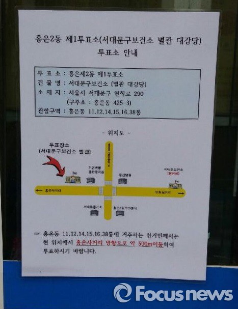 이에 대해 서대문구청 선거상황실은 "보건소 본관과 별관 이동거리 사이에 투표소 주소 변경 안내문을 부착해 주민들의 혼란을 최소화할 것"이라고 말했다.