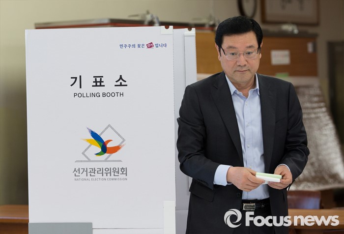 (광주=포커스뉴스) 제20대 국회의원 선거일인 13일 오전 광주 광산구 산월동 봉산초등학교에서 이용섭 더불어민주당 광주 광산구을 후보가 투표를 하고 있다.