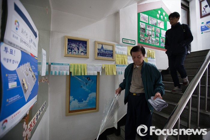 (서울=포커스뉴스) 제20대 국회의원선거일인 13일 오전 서울 강서구 화곡제8동 제5투표소에서 유권자들이 투표를 마치고 나오고 있다.