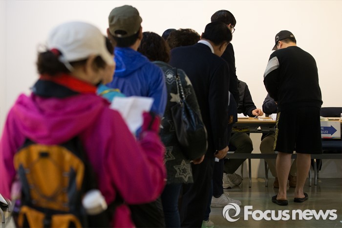 | △ 투표 위해 줄서서 기다리는 유권자들 |
