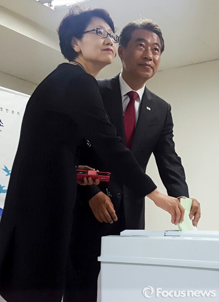 (대구=포커스뉴스) 제20대 국회의원선거날인 13일 오전 대구 동구 효목동에 마련된 투표소에서 정종섭 새누리당 동구갑 후보가 투표를 하고 있다.