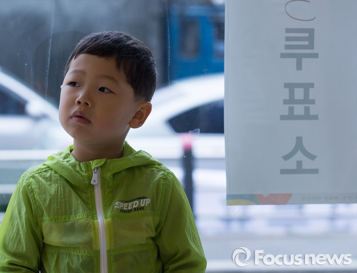 (서울=포커스뉴스) 제20대 국회의원선거일인 13일 오전 서울 광진구 능동 제3투표소에서 한 아이가 투표하는 부모님을 기다리고 있다.