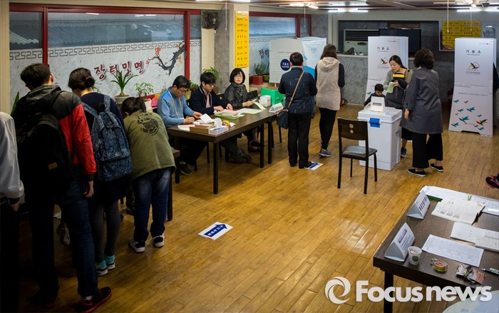 (부산=포커스뉴스) 제20대 국회의원선거일인 13일 오전 부산 사하구 하단1동 제1투표소에서 유권자들이 투표하고 있다. 이 투표소는 하단전통시장 내 한 밀면 음식점에 마련됐다.