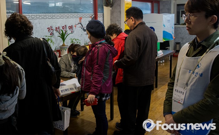 (부산=포커스뉴스) 제20대 국회의원선거일인 13일 오전 부산 사하구 하단1동 제1투표소에서 유권자들이 투표하고 있다. 이 투표소는 하단전통시장 내 한 밀면 음식점에 마련됐다.
