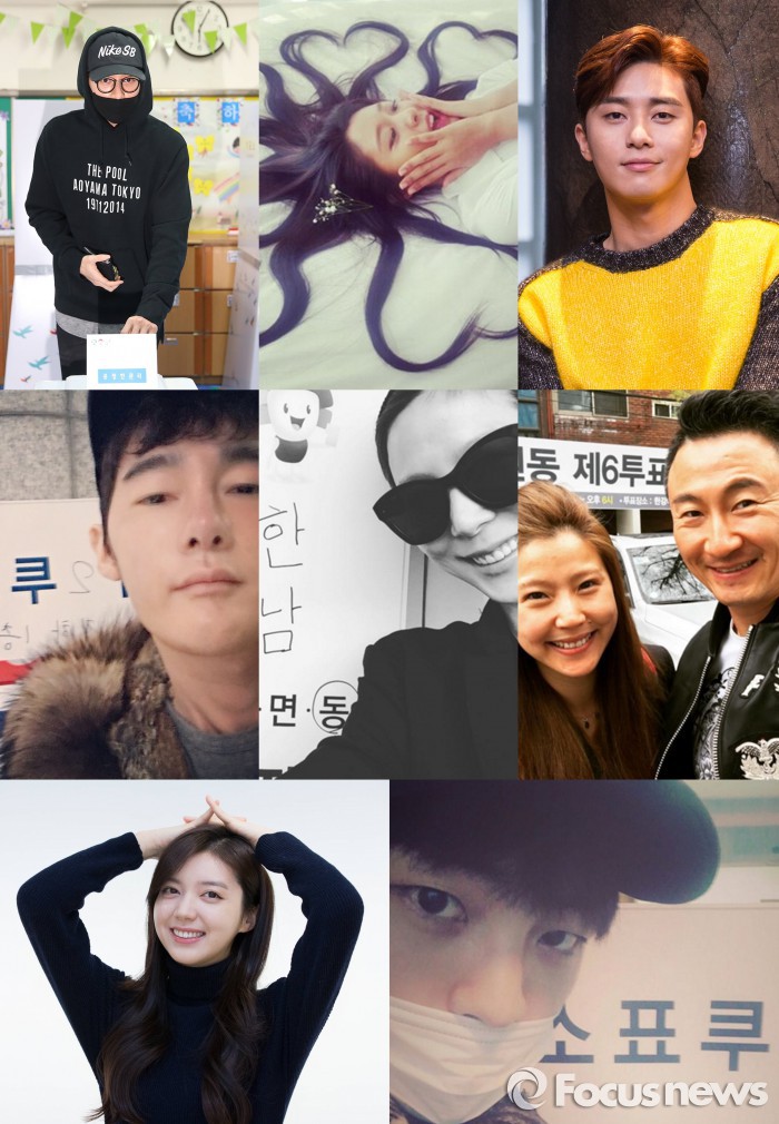 (서울=포커스뉴스) "4월 13일 투표하세요." 4‧13 총선 당일, 수많은 스타가 '제20대 국회의원 선거' 투표 인증샷으로 팬들의 투표 참여를 독려하고 있다.
