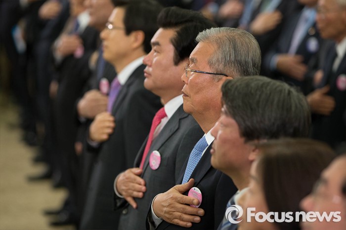 (서울=포커스뉴스) 제20대 국회의원 선거일인 13일 제97주년 대한민국 임시정부 수립기념식에서 여야 대표 4인이 조우해 눈길을 끌었다.