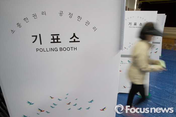 (서울=포커스뉴스) 2016 제20대 국회의원선거날인 13일 오후 서울 서초구 서이초등학교에 마련된 투표소에서 유권자들이 투표를 하고 있다.