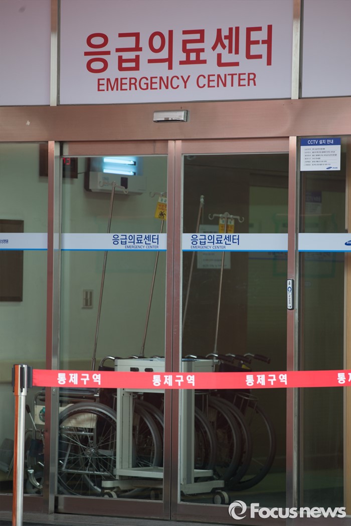 (서울=포커스뉴스) 13일 오후 서울 종로구 강북삼성병원 응급실 앞 출입이 통제되고 있다. 최근 한국에 입국한 아랍에미리트(UAE) 국적의 메르스 의심환자가 강북삼성병원 응급실을 방문해 메르스 의심 진단을 받은 것으로 확인됐다.