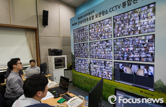 (서울=포커스뉴스) 제20대 국회의원선거일인 13일 오후 경기도 과천 중앙선거관리위원회에 마련된 선거상황실에서 CCTV 통합관제센터 관계자들이 관내사전투표함 보관장소를 실시간 감시하고 있다.