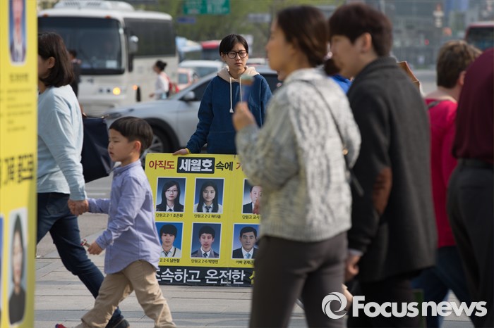 (서울=포커스뉴스) 제20대 국회의원선거날인 13일 오후 서울 종로구 광화문 광장에서 한 시민이 피켓을 들고 있다.