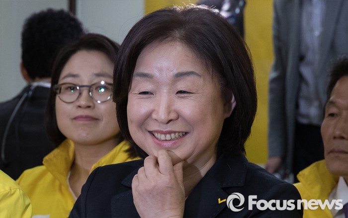 | △ 방송사 출구조사 결과 지켜보는 심상정 상임대표 |