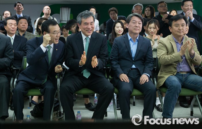 (서울=포커스뉴스) 안철수 국민의당 상임공동대표가 13일 오후 서울 마포구 당사 개표상황실에서 지도부와 함께 개표 방송을 지켜보고 있다. 오른쪽부터 김영환 국민의당 안산시상록구을 국회의원 후보, 안 대표, 이상돈 비례대표, 임내현 선거대책위원회 상황본부장