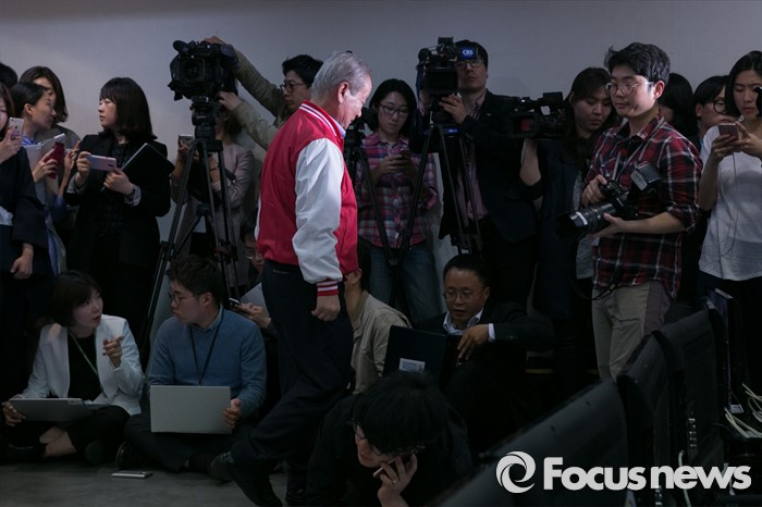 (서울=포커스뉴스) 제20대 국회의원 선거날인 13일 오후 서울 여의도 새누리당사에서 강봉균 공동선대위원장이 방송 3사의 출구조사 시청 중 자리를 떠나고 있다.