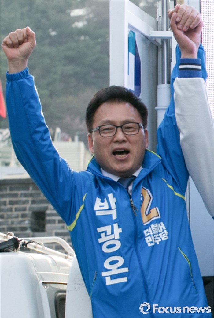 (서울=포커스뉴스) 13일 오후 9시14분 KBS는 개표율 38.1% 현재 경기 수원정 더불어민주당 박광온 후보가 46.0% 득표율로 당선이 확실하다고 밝혔다.(수원=포커스뉴스) 박광온 더불어민주당 경기 수원정 후보. 2016.04.13 박동욱 기자
