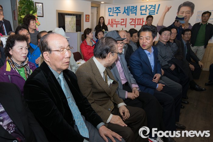 (서울=포커스뉴스) 13일 오후 서울 서대문구 김영호 더불어민주당 서대문구을 후보의 사무실에서 김후보가 지지자들과 함께 개표방송을 보며 박수치고 있다.