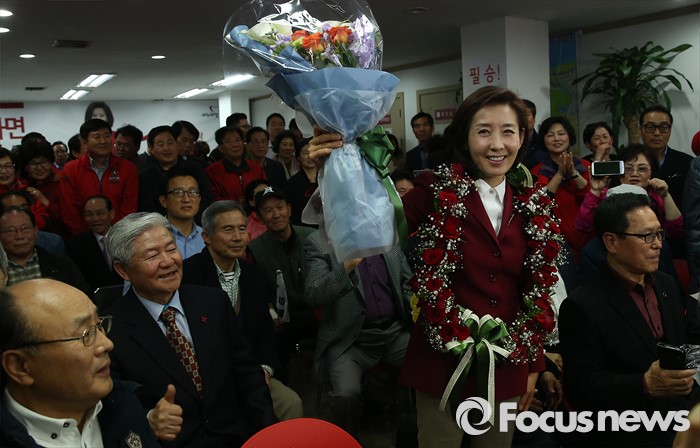 | △ 기뻐하는 나경원 새누리당 동작구을 후보 |