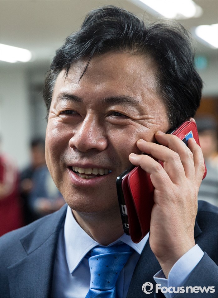 2위는 46.5% 득표율료새누리당 나성린 후보가 차지했다.(부산=포커스뉴스) 제20대 국회의원선거에서 당선이 확실시된 전재수 더불어민주당 부산 진구갑 후보가 13일 오후 부산 진구 선거사무소에서 축하전화를 받고 있다. 2016.04.14 양지웅 기자