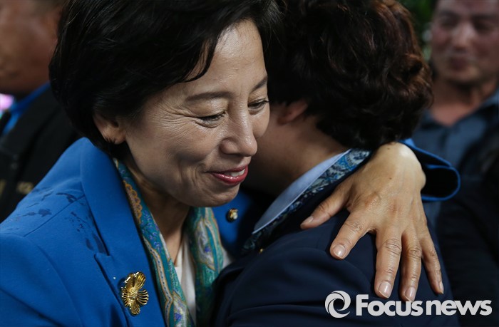 | △ 지지자와 기쁨 나누는 남인순 더불어민주당 송파구병 후보 |