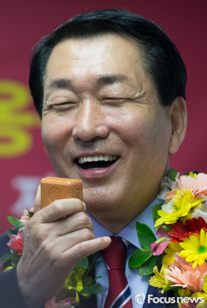(인천=포커스뉴스) 제20대 국회의원선거 인천 중구동구강화군옹진군 선거구에서 당선이 확실시 된 안상수 무소속 후보가 13일 오후 인천 중구 선거사무소에서 미소 짓고 있다.