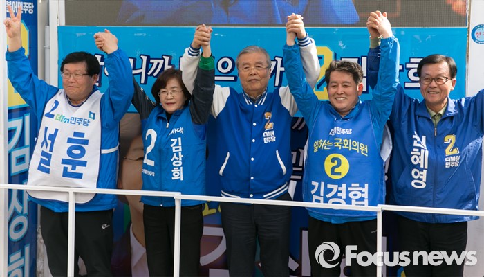 (서울=포커스뉴스) 14일 오전 12시30분 KBS는 개표율 60.4% 현재 경기 부천 원미을에서 더불어민주당 설훈 후보가 42.2%를 득표해 당선이 확실하다고 밝혔다.(부천=포커스뉴스) 20대 총선을 이틀 앞둔 11일 오후 경기도 부천역 남부광장에서 열린 더불어민주당 부천지역 합동유세에 참석한 김종인(왼쪽 세번째) 비대위 대표 겸 선대위원장이 지지를 호소하고 있다. 왼쪽부터 설훈 원미을, 김상희 소사구 후보 ,김 대표, 김경협 원미갑, 원혜영 오정구 후보. 2016.04.11 박동욱 기자