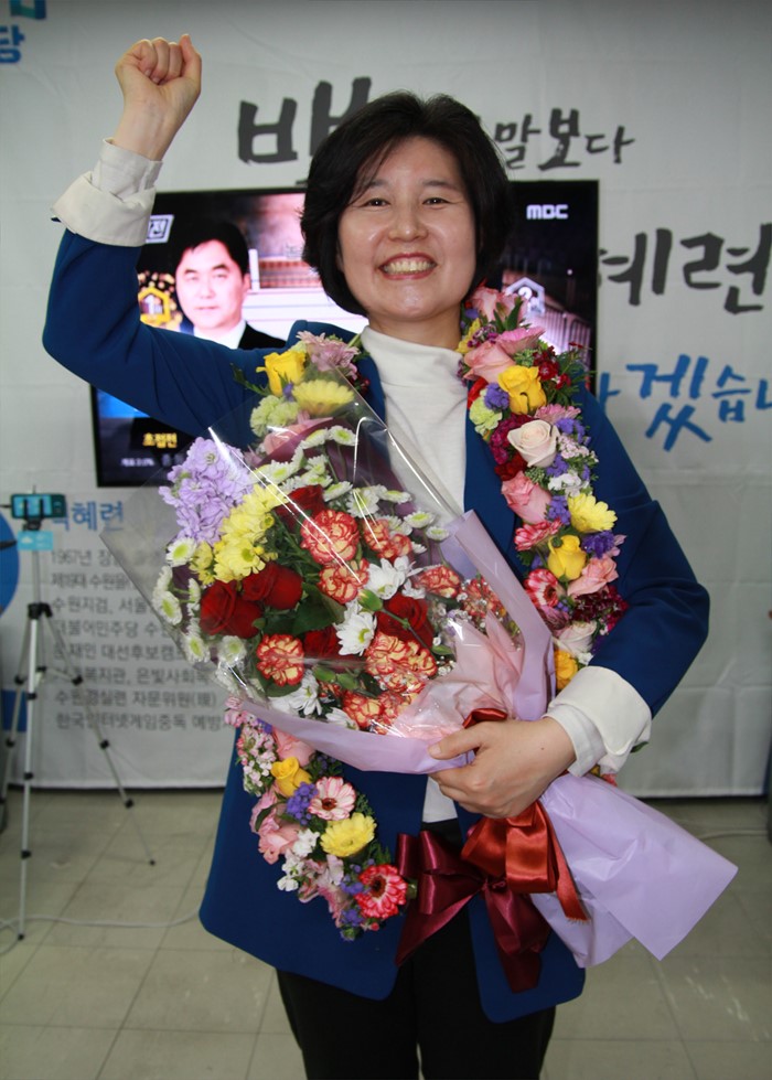 | △ 당선 확정된 더민주 백혜련 |