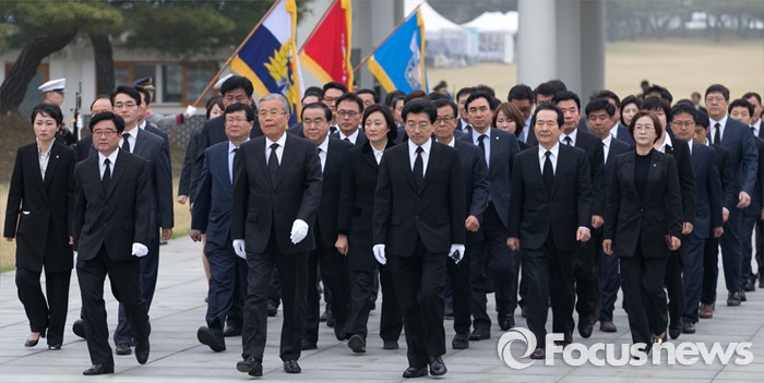 (서울=포커스뉴스) 14일 오전 동작구 국립서울현충원에서 김종인 더불어민주당 비대위 대표와 20대 총선 당선인들이 현충탑 참배를 위해 이동하고 있다.