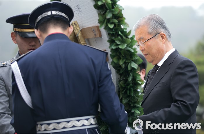 (서울=포커스뉴스) 14일 오전 동작구 국립서울현충원에서 김종인 더불어민주당 비대위 대표와 20대 총선 당선인들이 현충탑 참배를 하고 있다.