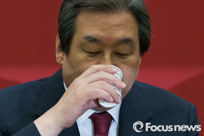 (서울=포커스뉴스) 김무성 새누리당 대표가 14일 오전 서울 여의도 국회에서 열린 중앙선대위 해단식에 참석해, 물을 마시고 있다. 이 자리에서 김 대표는 "선거 참패에 책임을 지고, 오늘부터 대표직을 사퇴한다"고 밝혔다.