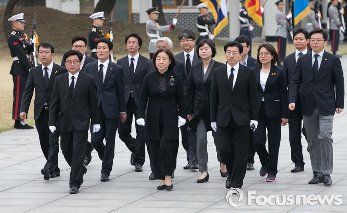 (서울=포커스뉴스) 심상정 정의당 상임대표와 20대 총선 비례대표 당선인들이 14일 오전 동작구 국립서울현충원에서 현충탑 참배를 위해 이동하고 있다.