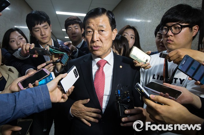 (서울=포커스뉴스) 20대 총선 패배에 책임을 지고 김무성 새누리당 대표가 당 대표직을 사퇴한 4일 오전 서울 여의도 국회에서 중앙선대위 해단식을 마친 황진하 사무총장이 취재진 질문에 답하고 있다.